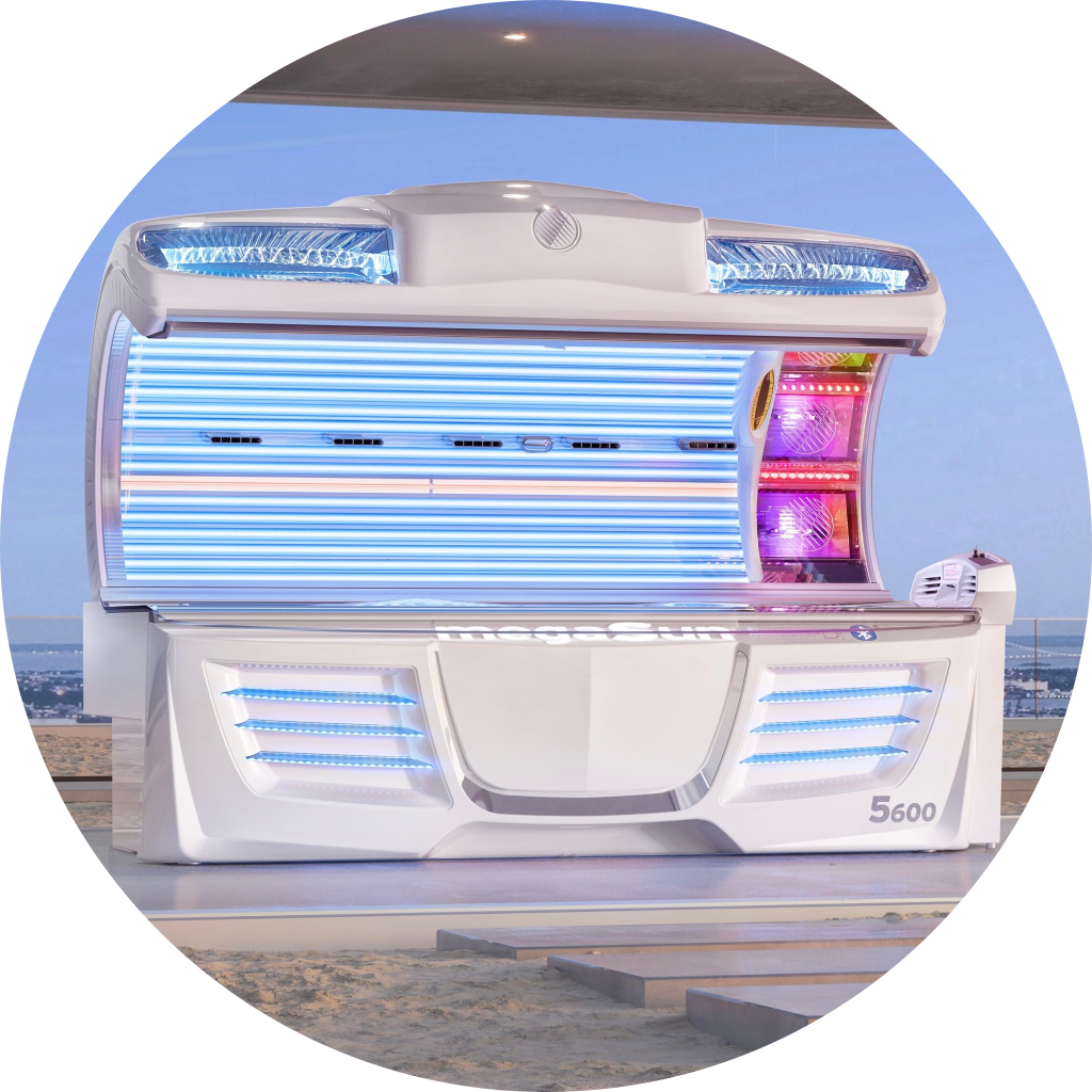 Spațios, dinamic și ușor de utilizat, Megasun 5600 este un plus uimitor pentru orice salon. LED-urile dinamice montate pe panoul frontal va întâmpina clientul cu o gamă special aleasă de culori care îmbunătățesc detaliile rafinate ale acestui frumos echipament. Cu 26 de lămpi în copertina, inclusiv 2 tuburi p2, 16 în bază și 4 bronzante faciale dedicate, 5600 este o unitate excepțional de competitivă.
